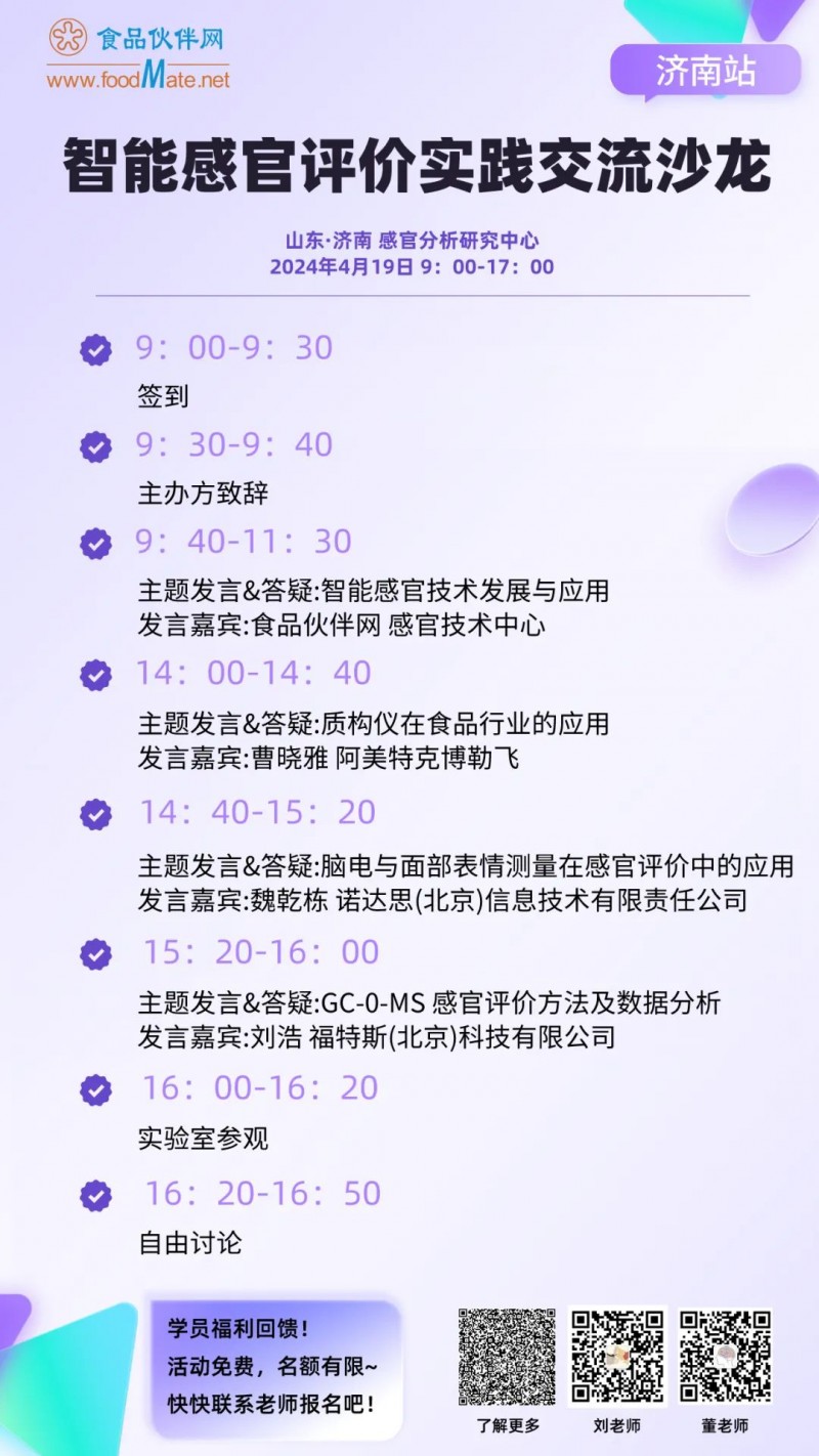歡迎食品、原料、農(nóng)產(chǎn)品、預(yù)制菜、日化、醫(yī)藥等行業(yè)的感官評(píng)測(cè)人員、品管品控人員、新產(chǎn)品開發(fā)人員,高校、科研院所等從事感官分析的研發(fā)技術(shù)人員,智能儀器機(jī)械設(shè)備廠家等相關(guān)人員報(bào)名參與。
