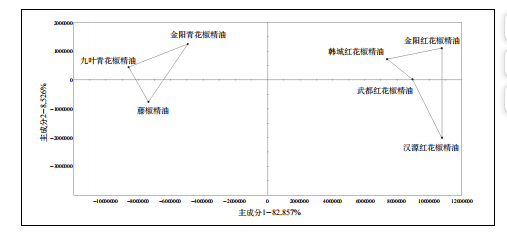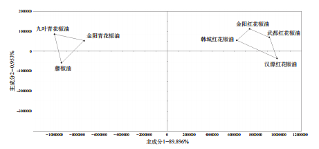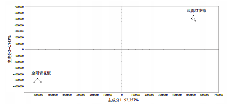 圖4 武都紅花椒、金陽(yáng)青花椒原料主成分分析
