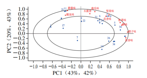 參考文獻:黨昕,劉軍,姚凌云等.GC-MS結合GC-O、電子鼻評價不同預處理方式對沙棗風味的影響[J].食品科學,2023,44(06):327-335.