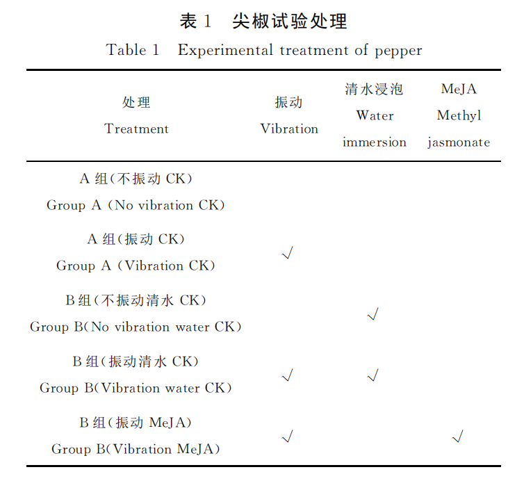 茉莉酸甲酯(MeJA)是植物中天然存在的生長調節因子,在調節植物脅迫反應和發育過程方面發揮著重要的作用。MeJA可以修復果蔬外來的機械損傷,防止病原菌侵染,還可促進果蔬營養成分的有效積累,提高果實的營養 價 值,延 長 其 貯 藏 期。但MeJA 在振動蔬 菜 上 鮮 有 研 究,因 此 該 研 究 利 用電子檢測技術分析尖椒、青圓椒、西蘭花3種蔬菜在運輸振動后氣味品質的變化,探究茉莉酸甲酯處理對振動后果蔬氣味品質的影響。