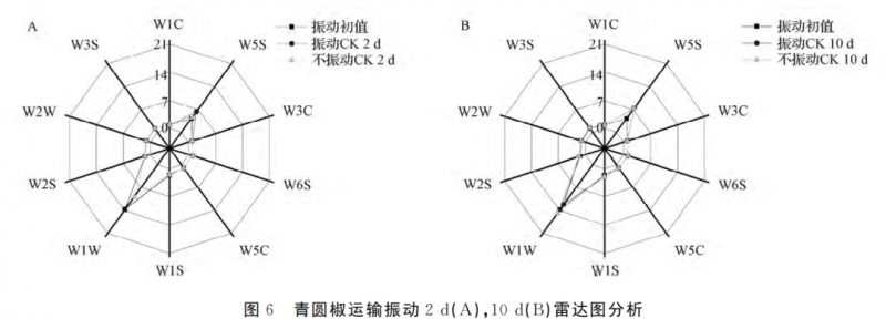 茉莉酸甲酯對青圓椒運輸振動影響雷達圖分析