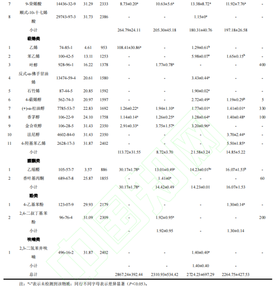 表1 石榴酒中揮發性成分的GC-MS分析結果