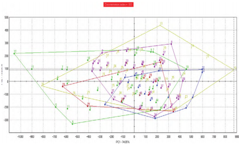 電子眼、電子鼻、電子舌的分析結果可以與人的感官評分結果進行擬合,從而實現未知樣品外觀表型數據及香味強度值、滋味值的預測,建立的聚類分析模型,可實現產地溯源及品種鑒定等聚類分析功能。通過同一樣品不同時期的數據采集,可以建立產品貨架期模型,實現對產品穩定性的有效評價。
