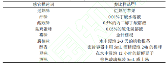 感官評價人員由4名經過1個月的香氣描述培訓的人員組成,感官描述詞由評價員投票決定。根據ISO4121-2003標準,實驗在20℃恒溫且通風的房間內進行,每個成員禁止交流,保證不會互相影響。樣品風味按照0~5級評分(0為沒有味道,3為有味道,5為味道非常強烈),感官描述詞最終得分取所有成員的平均分。