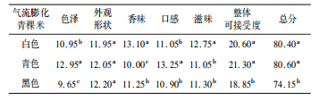 表2   3種色澤氣流膨化青稞米的感官評價結果